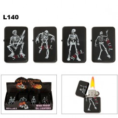 From the new line of Brass Oil Lighters, you'll find more frightening lighters too. Brass Oil Lighters are sold individually and are made of solid brass, making these a superior quality lighter. Every brass lighter will come in an individual lighter tin.
